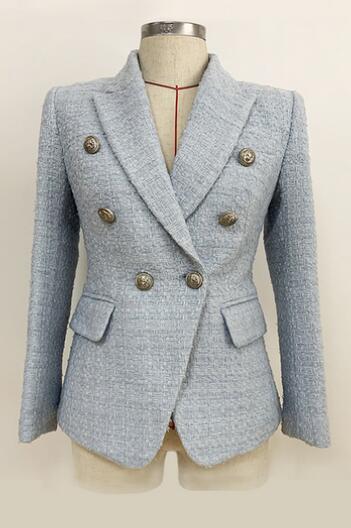 Light Blue Tweed Double Breasted Blazer For Womens