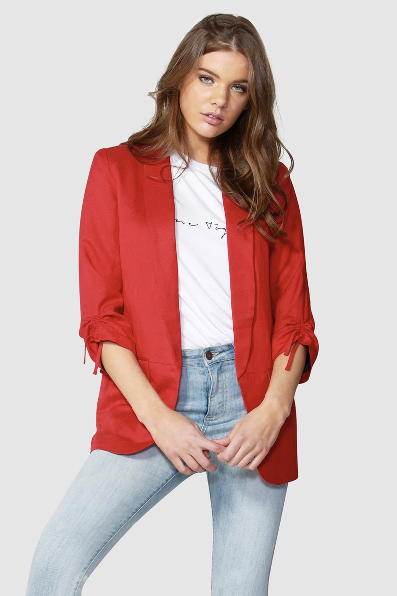 Red Oversized Satin Boyfriend Blazer For Womens