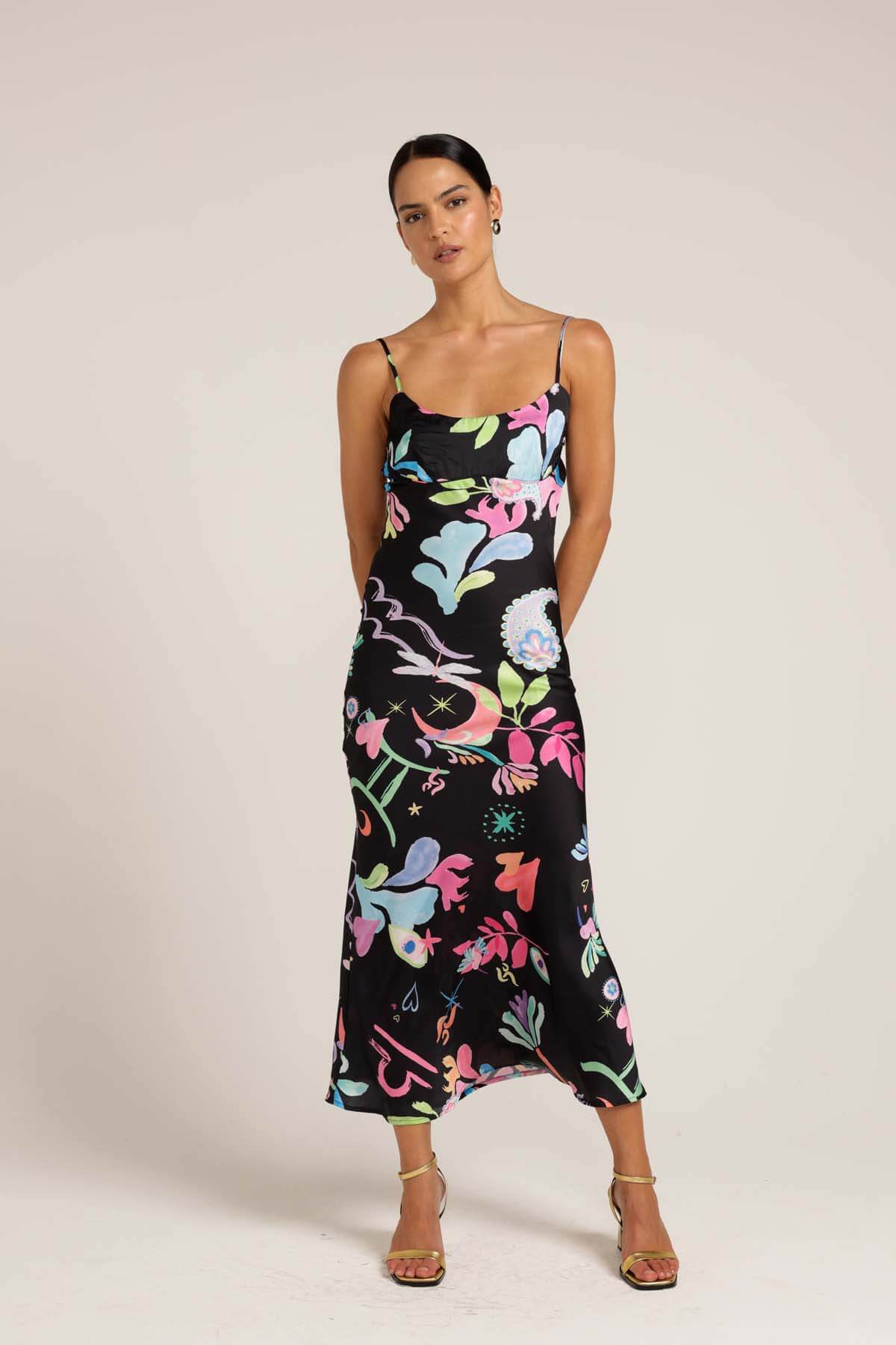Wholesale Floral Print Shoulder Strap Maxi Dress